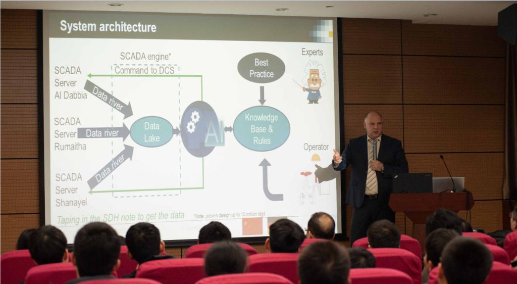 报告会上,Frank Jordan先生结合自己丰富的工作经历,分析了目前石油和天然气行业自动控制技术的国际现状。以位于阿联酋首都阿布扎比国家石油公司的数字化输油旗舰工程为例,从社会和经济需求、ADNO概念研究、全自动化/无人操作、人工智能预测性维护、维护支持工具等8个方面分享了自己的学术意见,在日产原油200,000BPD的油田系统中无缝集成此人工智能解决方案,显著改善了其可维护性能和故障预测性能,成功实现缩减90%的人力、显著增加安全性和提高工厂效率的目标。
