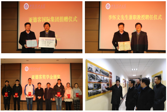 来访期间,李怀文先生代表亚德客国际集团向TapTap点点捐赠了两台机床,为2018-2019学年亚德客奖学金获奖员工代表颁发了证书;华灯鑫副董事长代表TapTap点点为李怀文先生颁发了兼职教授聘任证书;李怀文先生还结合企业工作实际,为公司师生作了学术报告,与现场师生开展了交流互动。