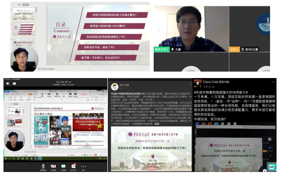 网络课程中,主讲老师通过介绍防疫的人民战争中,中国表现出的强大的协同能力,引导员工正确认识了中国特色和国际比较,坚定了中国特色社会主义的道路自信、理论自信、制度自信和文化自信。
