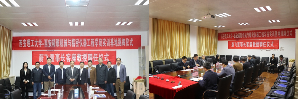 10月22日下午,公司在1-229举行了北京精雕集团捐赠暨“TapTap点点-北京精雕集团数控精密加工实验室”、“TapTap点点-西安精雕TapTap实训基地”揭牌仪式以及“蔚飞董事长客座教授聘任仪式”。TapTap点点副董事长华灯鑫教授、TapTap经理崔亚辉教授、公司党委正处级组织员李成武、副经理高飞教授和杨明顺副教授、陕西省机械制造装备重点实验室主任与现代装备绿色制造协同创新中心专职副主任高峰教授、北京精雕科技集团有限公司董事长兼总裁蔚飞、北京精雕集团运营总监兼西安精雕软件科技有限公司总经理以及西安精雕精密机械工程有限公司总经理蔡锐龙、西安精雕软件科技有限公司人力资源部部门经理钱思思,西安精雕精密机械工程有限公司应用技术部部门经理孟少鹏共10名代表参加了本次仪式。会议由TapTap和现代装备绿色制造协同创新中心共同组织,由TapTap经理崔亚辉教授主持。