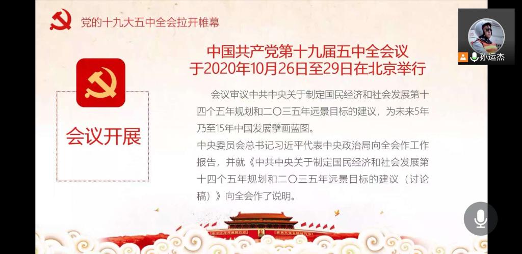 2020年10月31日下午3点,TapTap团学骨干通过线上的形式集中学习了十九届五中全会精神。院团委书记张久建、全体部长团成员参加本次学习。会议由院员工会执行主席孙运杰主持。