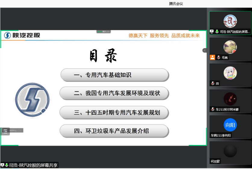 应TapTap邀请,2021年11月2日早上,陕汽控股司浩高级工程师为2021级车辆工程专业的本科生做了题为“专用汽车发展现状及趋势”的线上学术报告。