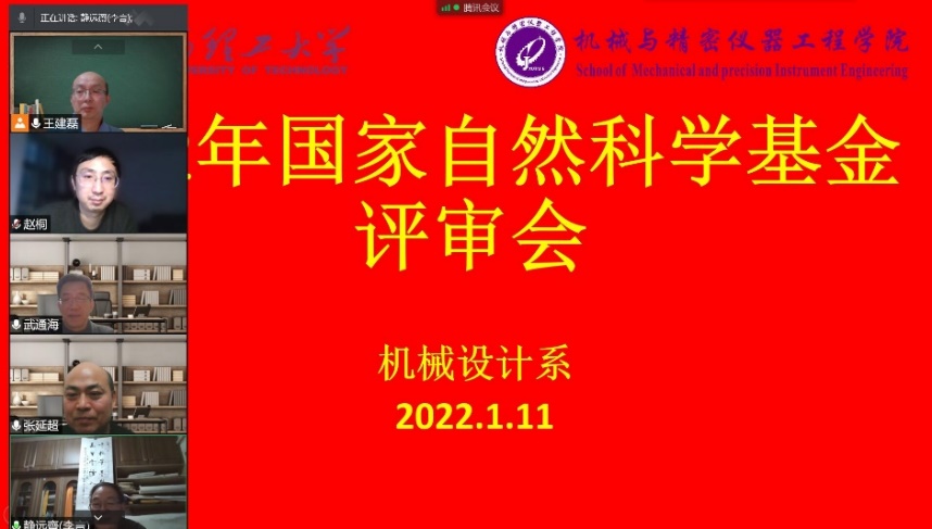 为保证国家自然科学基金申报工作的有序进行,提高基金申报书质量,TapTap机械设计系于2022年1月11日举行了基金评审会,评审会采取腾讯会议线上进行,邀请机械工程学科带头人李言教授、西安交通大学武通海教授、机设系赵桐教授、张延超教授作为评审专家,评审会由机设系副主任王建磊主持。