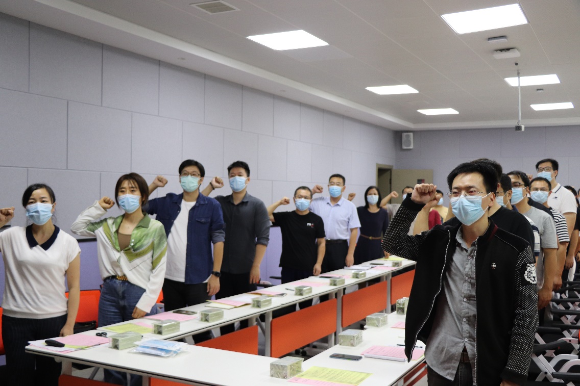 会议在全体与会人员齐唱校歌《春华秋实》的歌声中拉开帷幕,在庄严肃穆的氛围下,在教师职业的自豪感和责任感中,青年教师代表元振毅领誓,全体参会教师对教育事业许下庄严承诺。铿锵有力的誓言督促、激励着每一位青年教师牢记时代使命,履行教师神圣职责,矢志成为有理想信念、有道德情操、有扎实知识、有仁爱之心的新时代“四有”好老师,为党和人民的教育事业而不懈奋斗。