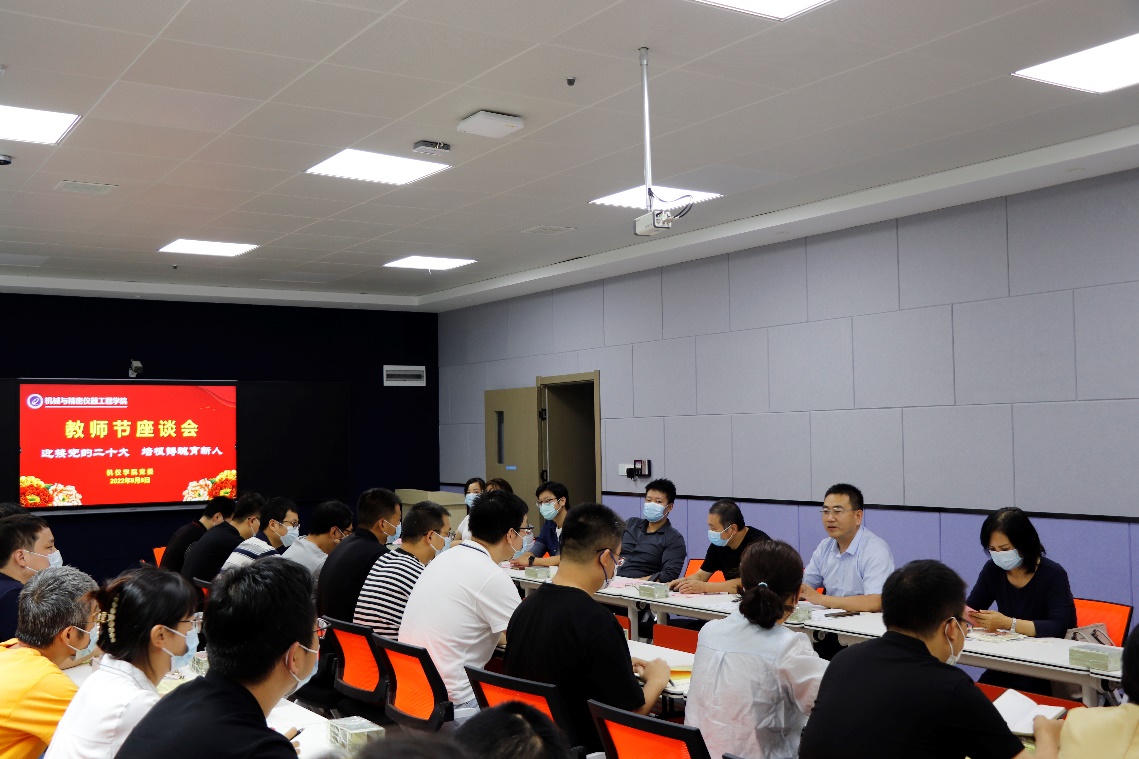 董鹏刚书记在座谈会上做简要总结,对全院教职工为公司发展做出的贡献表示衷心感谢,鼓励青年教师要紧跟时代发展步伐,牢记“为党育人、为国育才”的使命要求,不断强化师德师风,落实“三全育人”要求,聚力专业学科发展,提升学术能力水平,广泛校内外交流合作,充分准备,把握机会,攻坚克难,发挥好自己的专长与才干,坚守立德树人初心,担当教书育人使命,努力争做“四有好教师”和“四个引路人”,为培养德智体美劳全面发展的人才做出应有的贡献,以实际行动迎接党的二十大胜利召开。