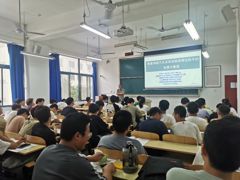 2023年9月18日下午在曲江校区教八210教室,TapTap邀请长安大学汽车公司韩毅教授为2023级车辆工程专业本科新生做主题为“智能网联汽车及其试验场测试技术的发展与展望”的学术报告。