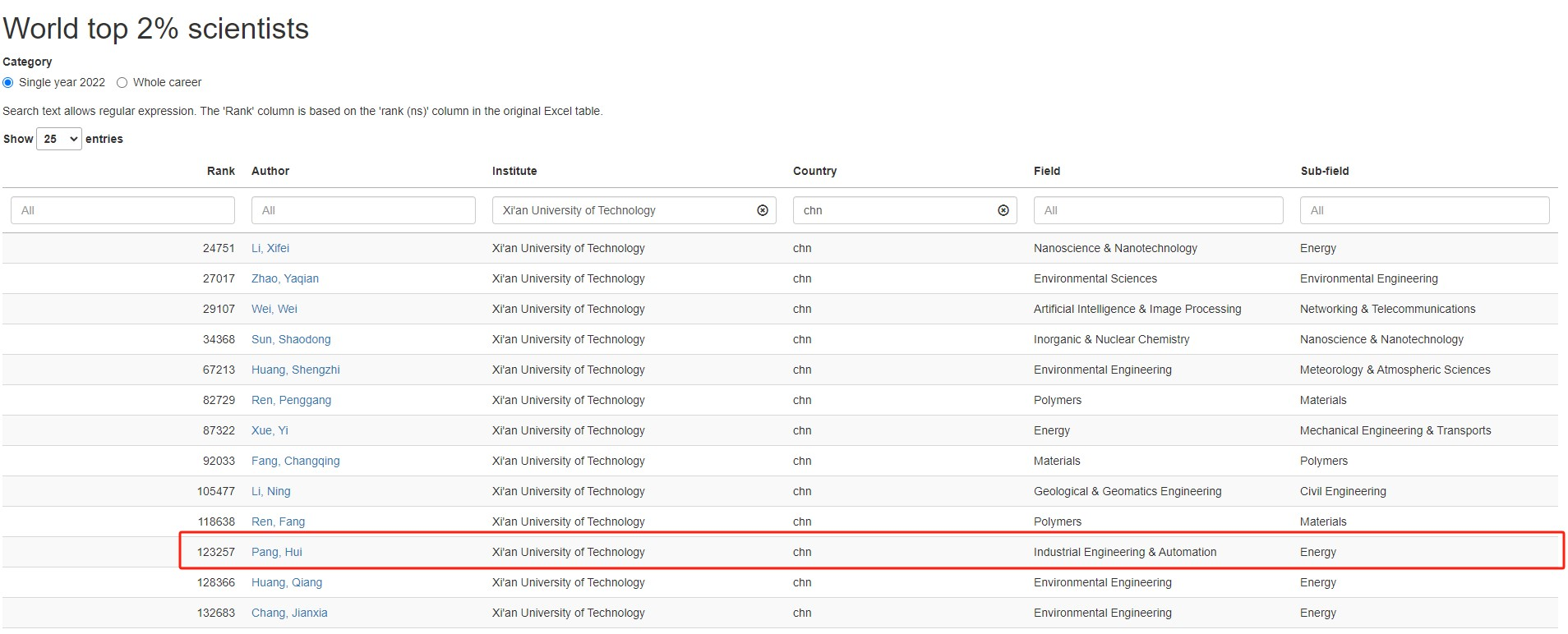 近日,美国斯坦福大学和爱思唯尔数据库(Elsevier Data Repository)共同发布了2023年度全球前2%顶尖科学家榜单(World’s Top 2% Scientists 2023),榜单分为“终身科学影响力排行榜”和“年度科学影响力排行榜”,TapTap点点TapTap庞辉教授入选“2023年度科学影响力排行榜”(学术领域为“Industrial Engineer & Automation”)。