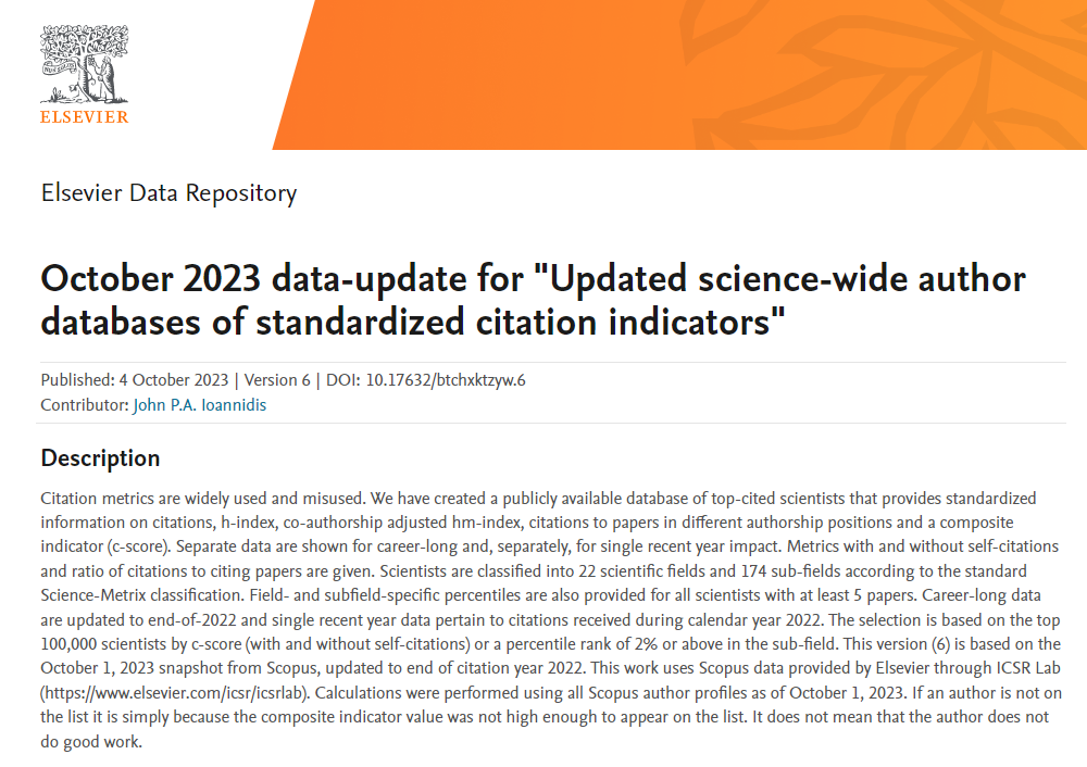 (完整榜单:https://elsevier.digitalcommonsdata.com/datasets/btchxktzyw/6)
