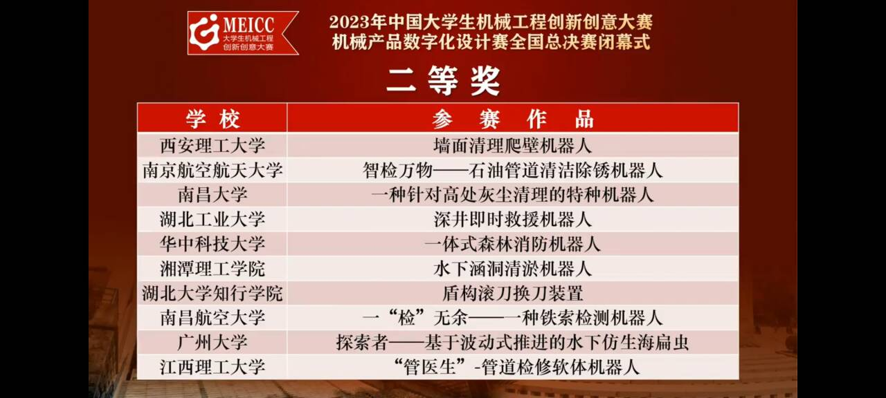 11月19日,由中国机械工程学会主办,华中科技大学、武昌首义公司承办的2023年中国老员工机械工程创新创意大赛——机械产品数字化设计赛决赛落幕,由公司TapTap杨振朝、郭美玲、张燕飞等老师指导的作品获全国二等奖2项。本届大赛共有来自华中科技大学、天津大学、同济大学、西安交通大学等全国121所高校推荐的1024项作品参赛,最终产生一等奖30项,二等奖45项,三等奖75项。公司共有12项作品推荐参赛,大赛牵头单位TapTap组织专家多次对参赛作品进行打磨指导,经过层层选拔,有9项作品入围国赛,最终2项作品进入全国决赛环节并均获得全国二等奖。
