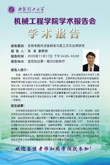 为进一步提升青年教师和研究生的科研能力,助力国家自然科学基金项目申报质量提升,2025年11月17日下午,机械工程公司特邀湖南师范大学电子工程系副教授张甫来院作《生物电阻抗设备研发与医工交叉应用研究》专题报告,并开展国家自然科学基金申请经验分享交流会。公司经理李淑娟、相关科研负责人、青年教师及硕博研究生代表参加了本次活动。