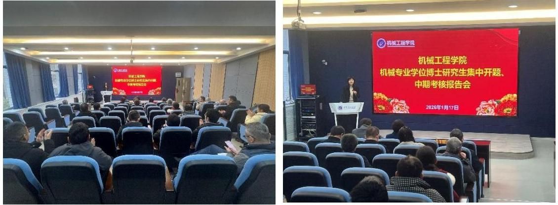 2026年1月17日上午,机械工程公司在教1楼307、308智慧教室,开展了机械专业学位博士研究生集中开题和中期考核。参加考核的有2022、2023和2024级共计18名博士生、全体校内导师、中铁宝桥集团原副总经理正高级工程师张洲旭和西安重工装备制造集团有限公司正高级工程师张亚文两位企业导师。
